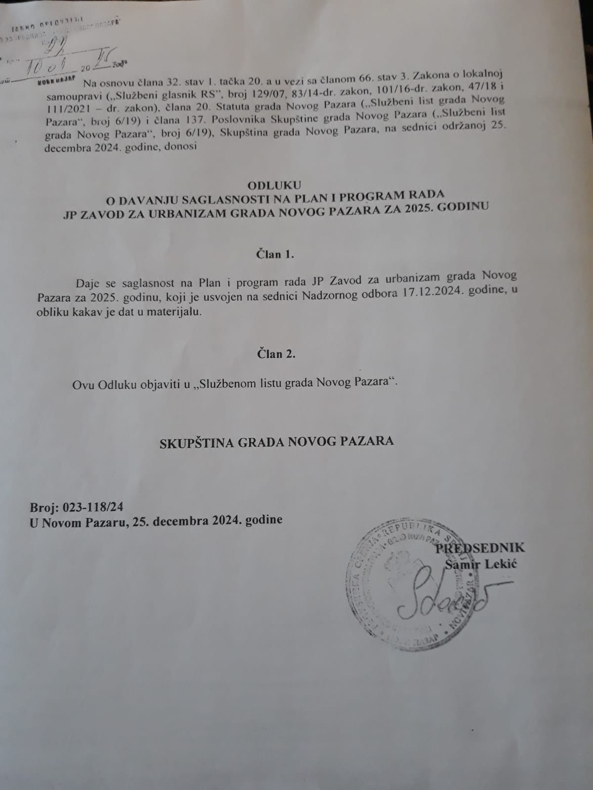 | 10. | ODLUKA SKUPŠTINE GRADA O DAVANJU SAGLASNOSTI ZA PLAN I PROGRAM RADA 2025 | .jpg |